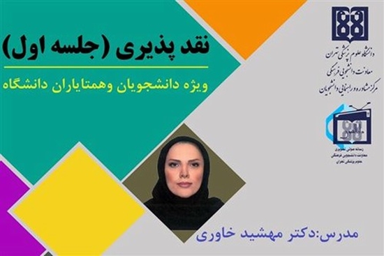 مرکز مشاوره و راهنمایی معاونت دانشجویی فرهنگی دومین کارگاه روانشناختی ویژه دانشجویان و همتایاران سلامت روان دانشگاه علوم پزشکی تهران را با عنوان «نقدپذیری» برگزار می کند.