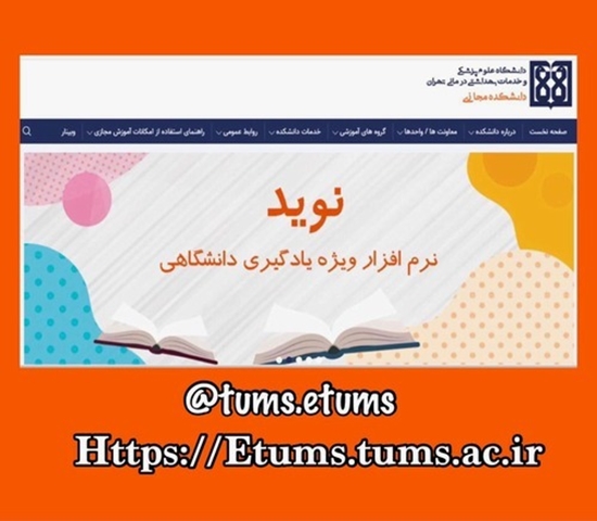 به اطلاع می رساند که دروس ترم تابستان سال جاری (1399-1400) در نوید دانشگاه بارگذاری شدند. شما می توانید از طریق آدرس http://tumsnavid.vums.ac.ir وارد این سامانه شوید. دانشجویان مهمان دانشگاه نیز برای آشنایی با نحوه ورود به این سامانه اینجا را مطالعه و برای مشاهده اطلاعات بیشتر اینجا را کلیک کنید تا با نحوه کار با سامانه نوید دانشگاه آشنا شوید.